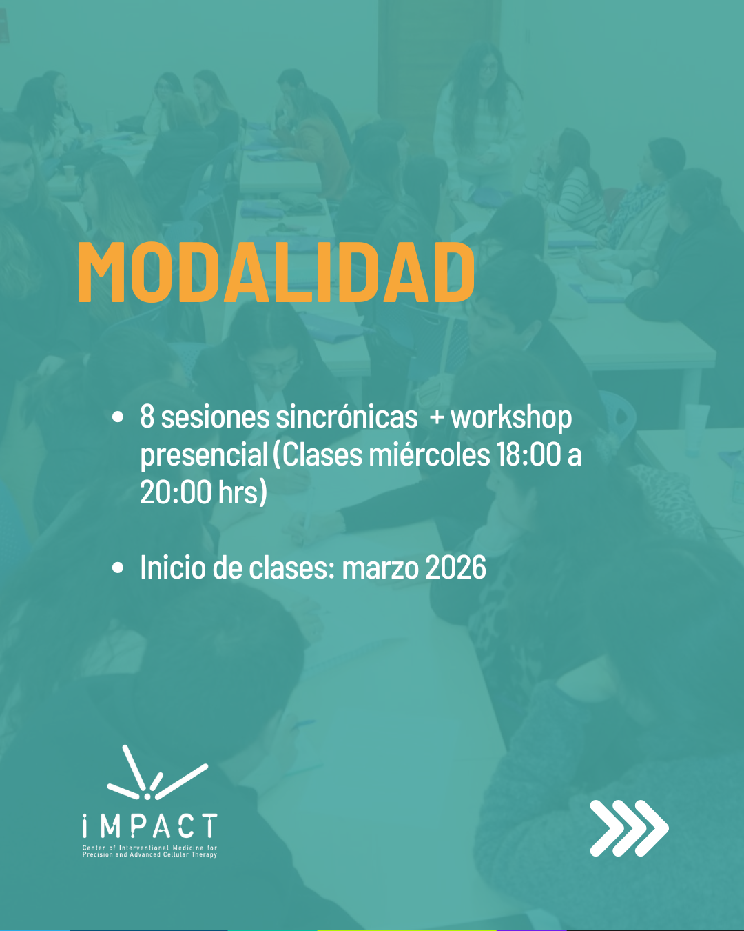 - Modalidad: 8 sesiones sincrónicas + workshop presencial