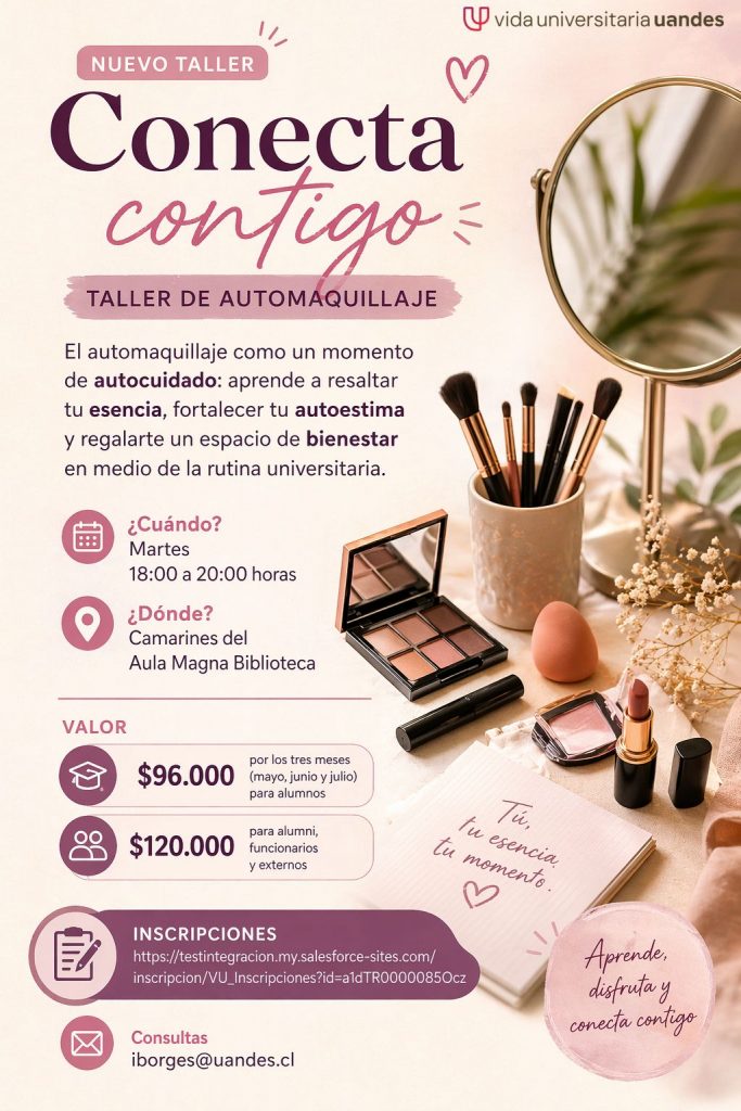 El automaquillaje como un momento de autocuidado: una invitación a resaltar la esencia personal, fortalecer la autoestima y generar un espacio de bienestar en medio de la rutina universitaria.